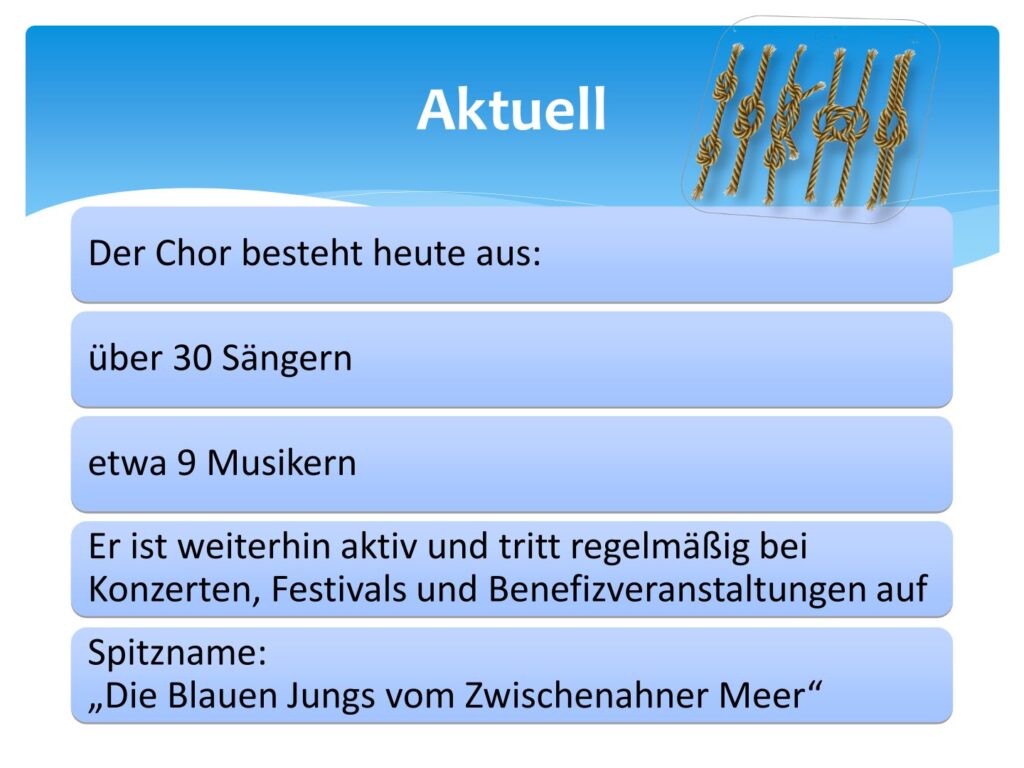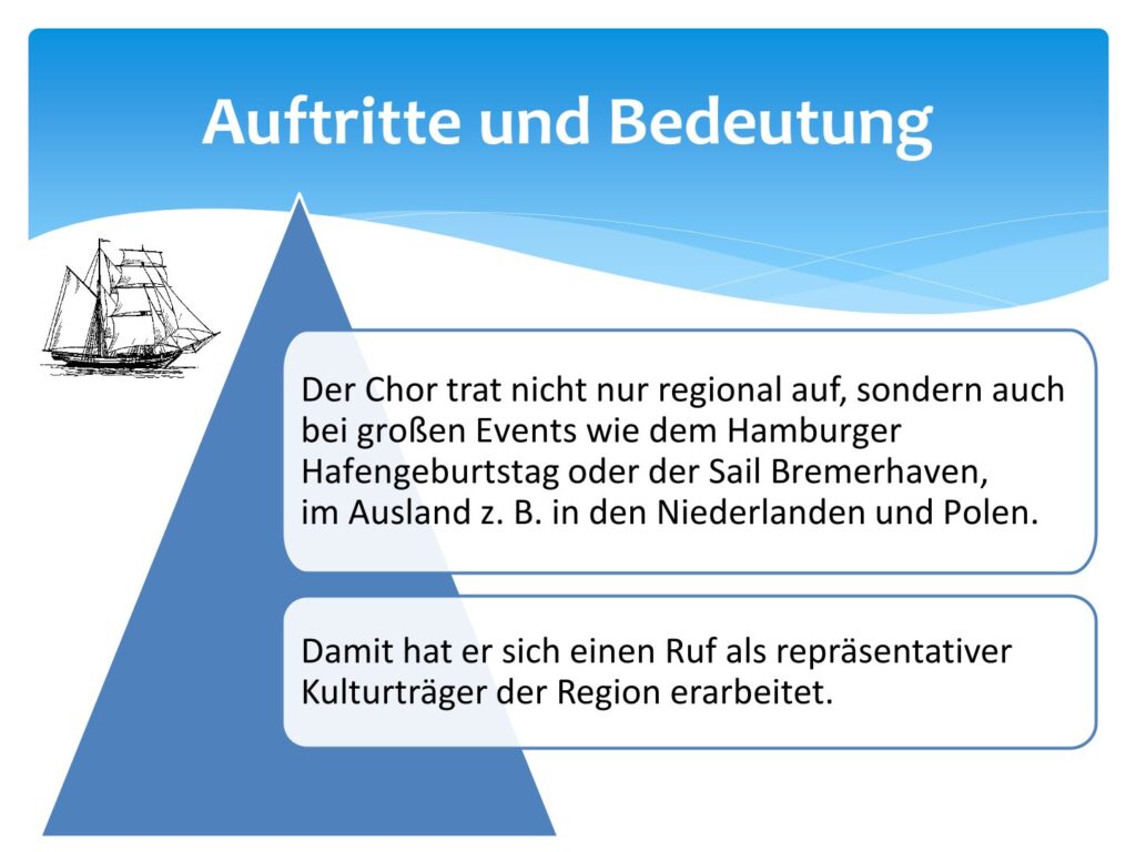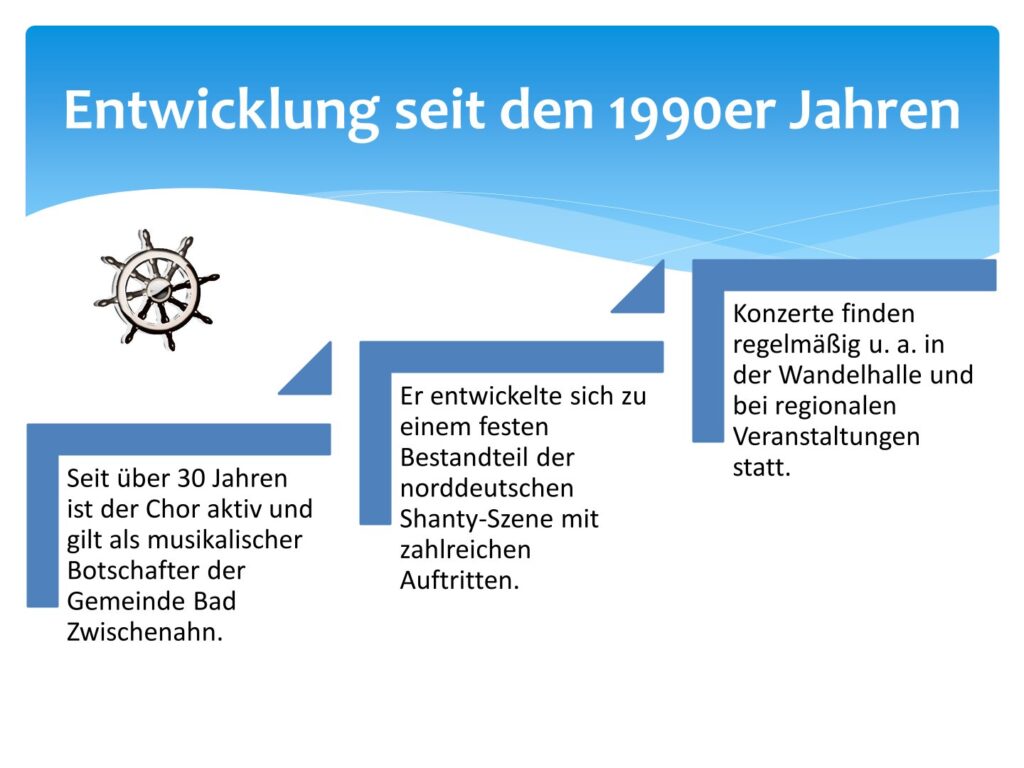 Der Shantychor Bad Zwischenahn steht seit vielen Jahren für die lebendige Pflege maritimer Musiktradition. Mit unseren Liedern bringen wir Sänger den Zauber von Wind und Wellen, Fernweh und Heimathafen auf die Bühne.